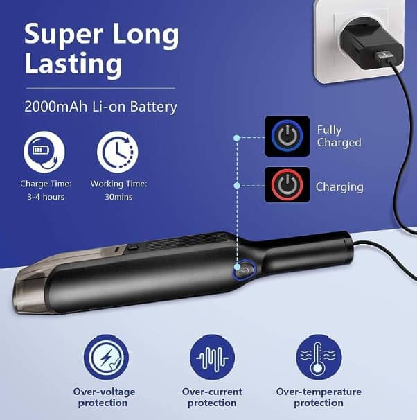 Wide Use: Car Vacuum Cleaner can be used as a computer cleaner blower, laptop cleaner, desk vacuum cleaner, hand vacuum for car, piano, pet house, office desk cleaning, etc.